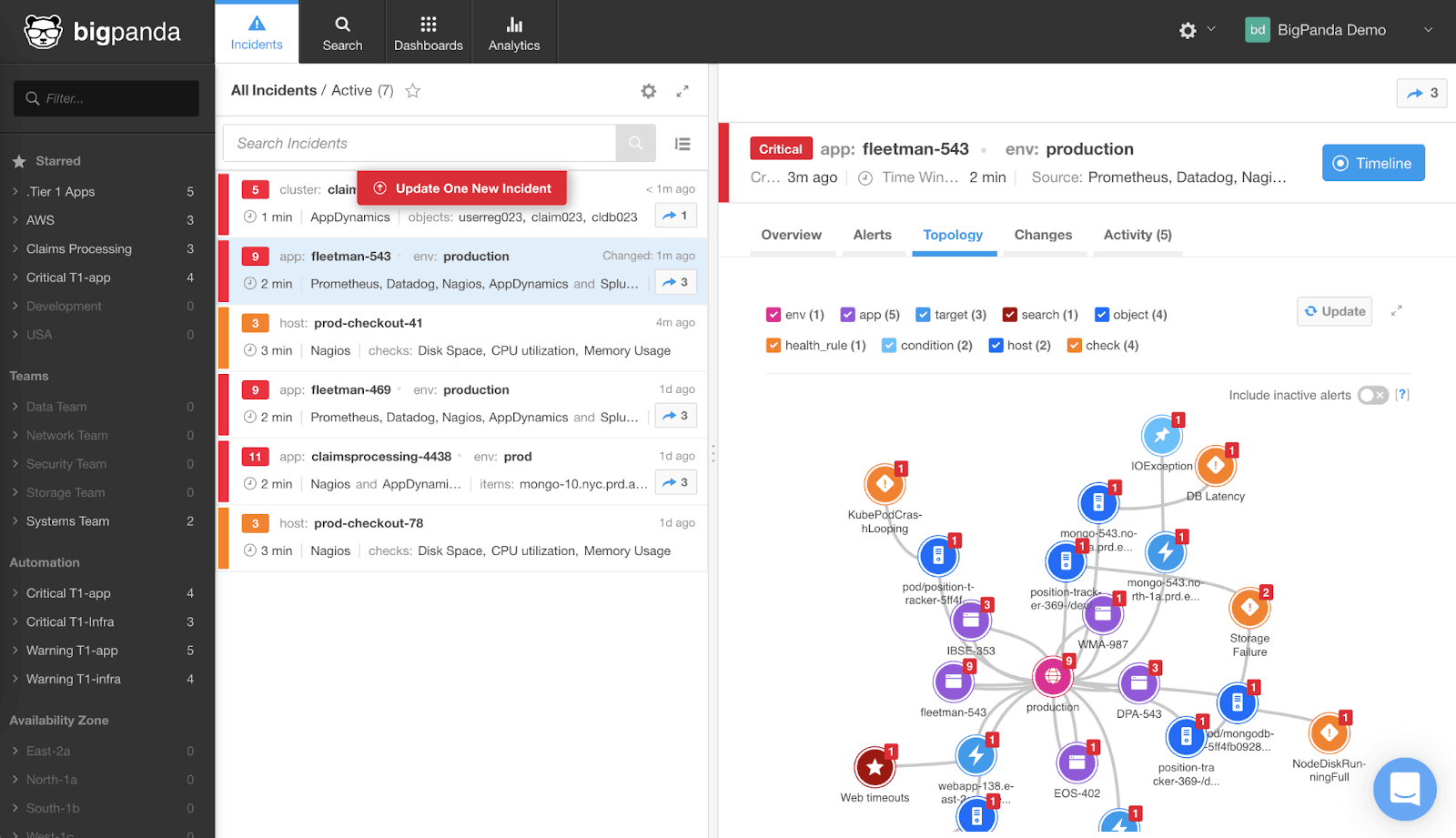 - Incident Response Streamlining: BigPanda streamlines incident response with automatic incident triage, bi-directional ticketing, notifications, and the creation of war rooms. It also connects to third-party runbook automation tools to enable faster incident response.