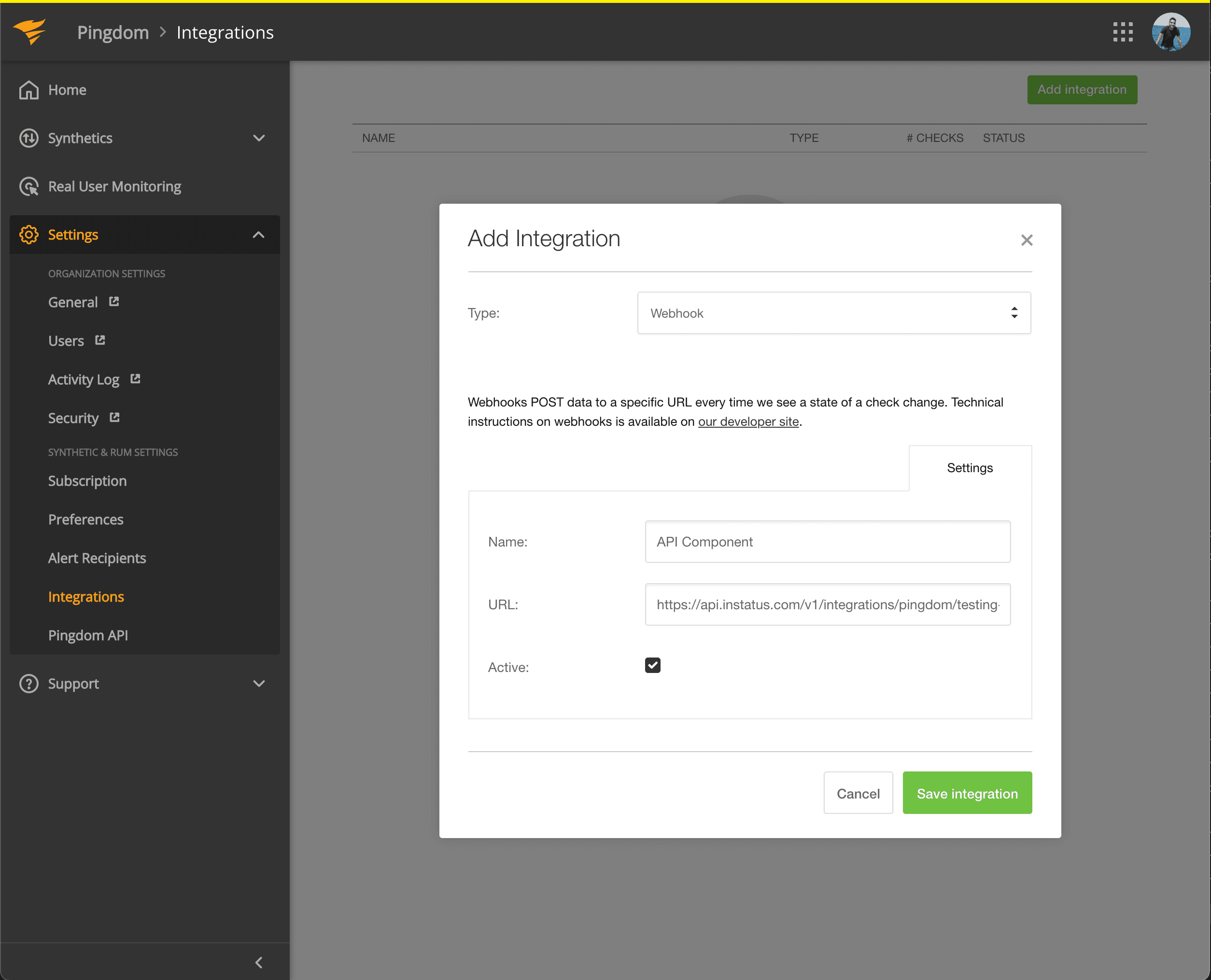 Under Connect Integrations, check the integration you just created, and click modify check!