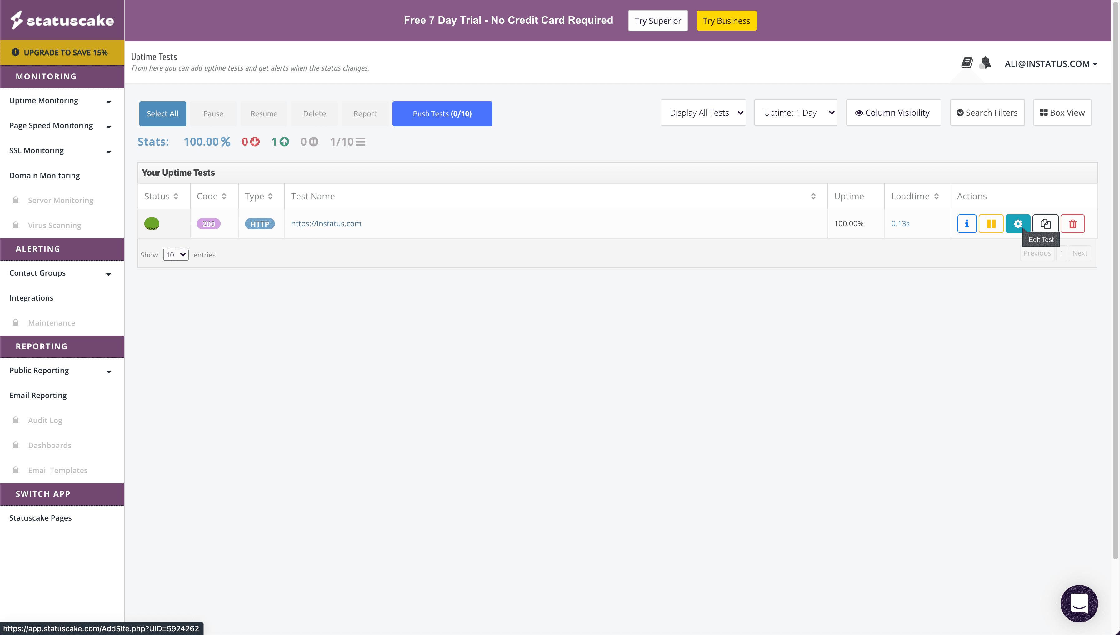 - Open your StatusCake dashboard.